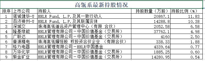 高领系其余持股公司深城交(301091.SZ)、广联达(002410.SZ)、格力电器(000651.SZ)、万华化学(600309.SH)、紫金矿业(601899.SH)等公司则并未公告高瓴参与了转融通业务。但值得注意的是,这些公司中,除深城交持股比例超过5%的股权变动信息披露红线,其他高瓴系公司在上市公司中的持股都低于5%。今年三季报中,上述股权除隆基绿能被减持外,其他都没有减持迹象。