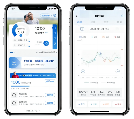 血糖监测、用药监测是糖尿病患者自我管理与治疗中非常重要的组成部分。现实生活中,由于用药频繁、记录繁琐等原因,患者往往难以坚持长期的自我监测,进而可能造成遗漏用药、依从性差、血糖波动大控制不佳,最终影响糖尿病患者的生活质量。