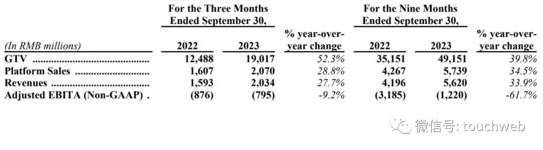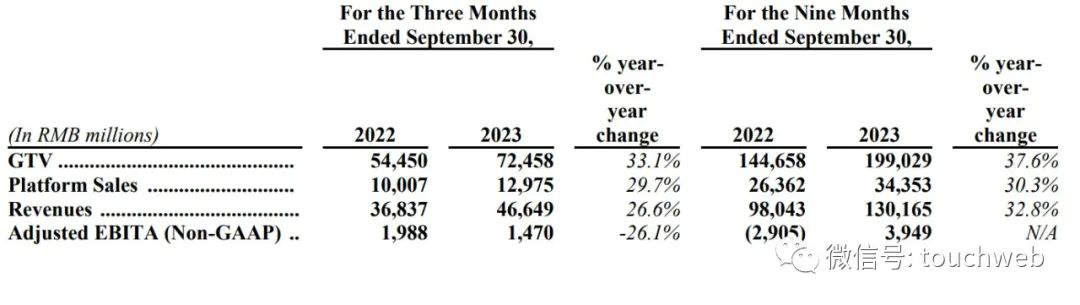 滴滴2023年第三季度来自中国出行业务的Adjusted EBITA为14.7亿元,较上年同期的19.88亿元下降26.1%;而2023年前三季度来自中国出行业务的Adjusted EBITA为39.49亿元,上年同期的Adjusted EBITA为-29.05亿元。