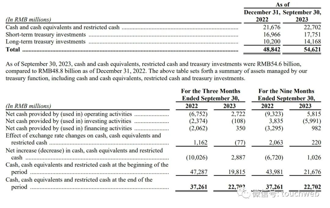 截至2023年9月30日,滴滴现金及现金等价物、受限资金和理财投资余额为546亿元,相比截至 2022年12月31日的488亿元有所上升。同时,公司披露在未来24个月进行不超过10亿美元的回购计划。