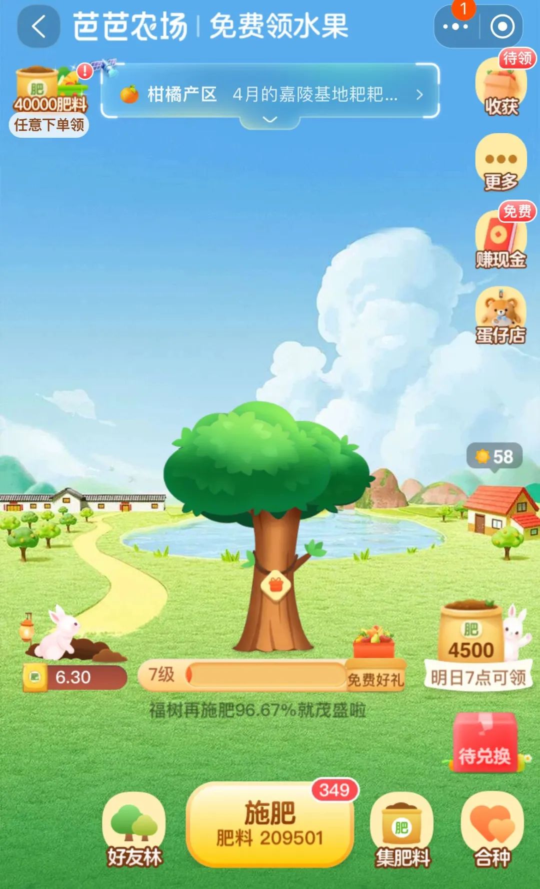 淘宝的芭芭农场应该有不少小伙伴玩过,玩法相对简单,只要通过任务获得肥料,给果树施肥即可。
