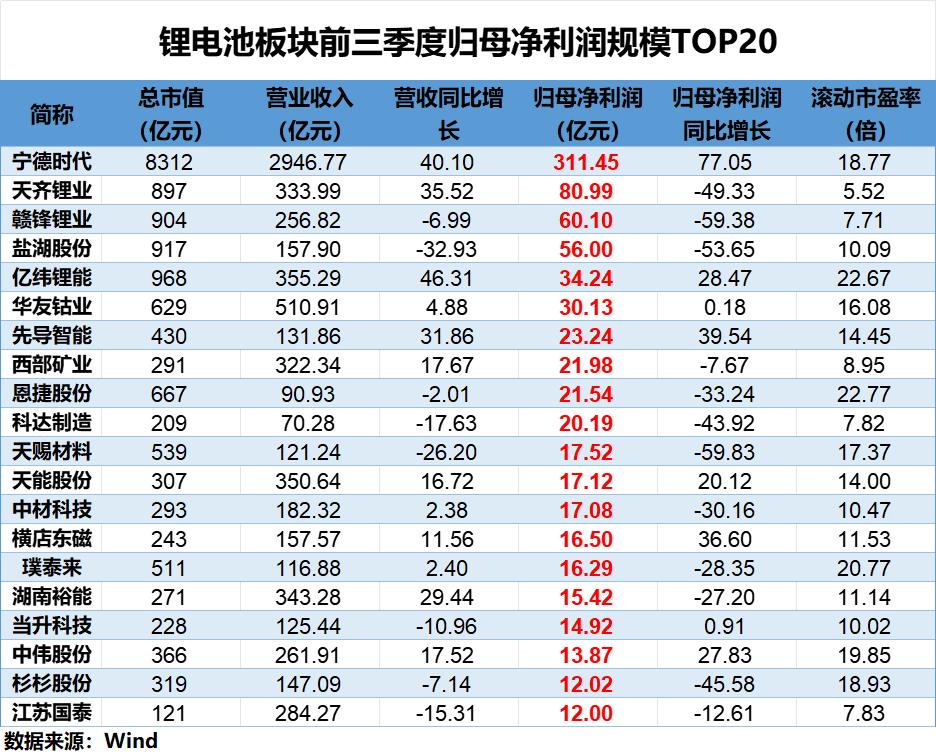 《投资者网》注意到,在今年前三季锂电池企业净利润规模TOP20榜单上,净利润同比下降的企业多达12家, 业绩变脸现象较为普遍,尤其是国内锂电头部企业出现利润大幅下滑。