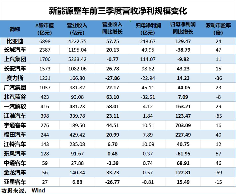 盈利方面来看,《投资者网》统计,16家已披露今年三季报的新能源车企中,12家公司实现归母净利润同比增长,占比超过七成,龙头车企比亚迪净实现净利润213.67亿元,同比增长130%,成为最赚钱的车企。