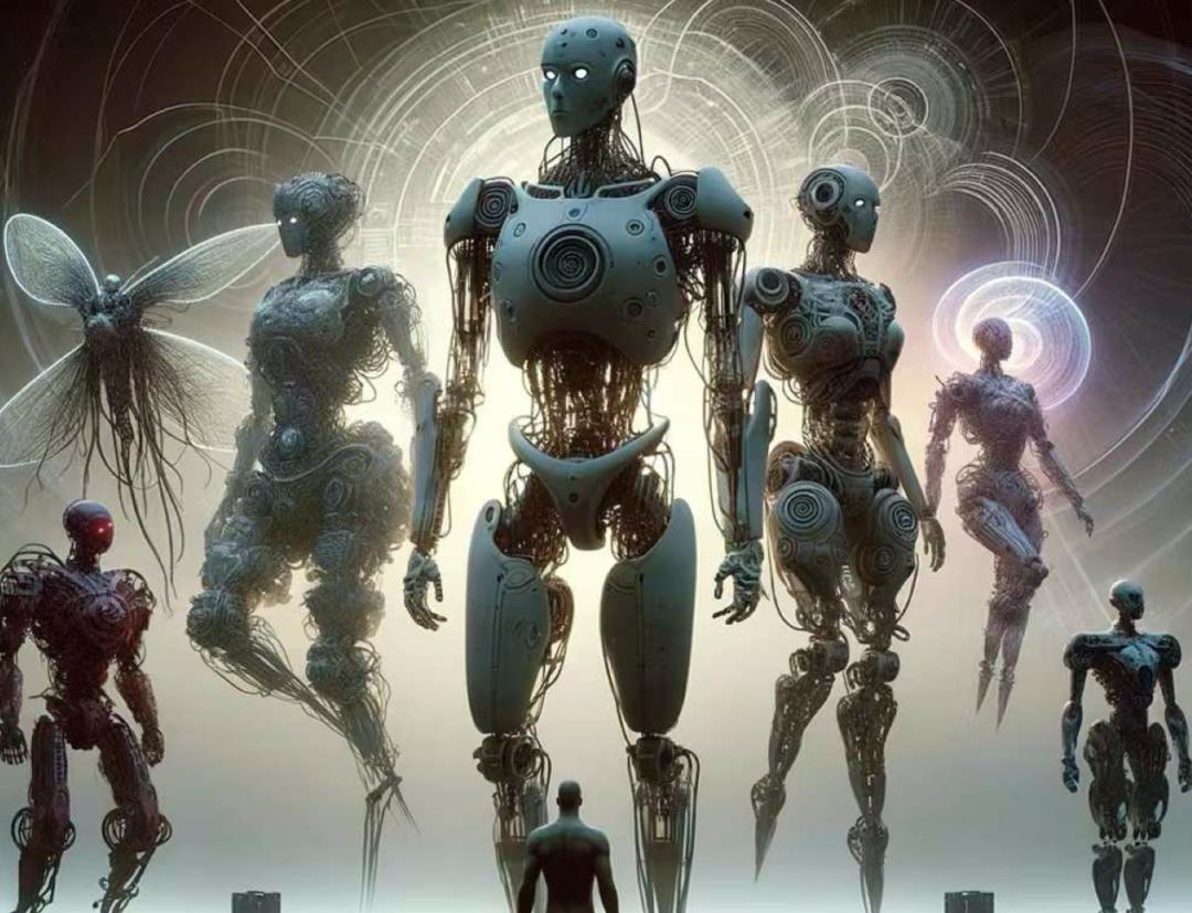 所以感慨万分,我用chatGPT生成了一张图:每个人背后都是多个机器人在帮我们思考(还挺吓人的)