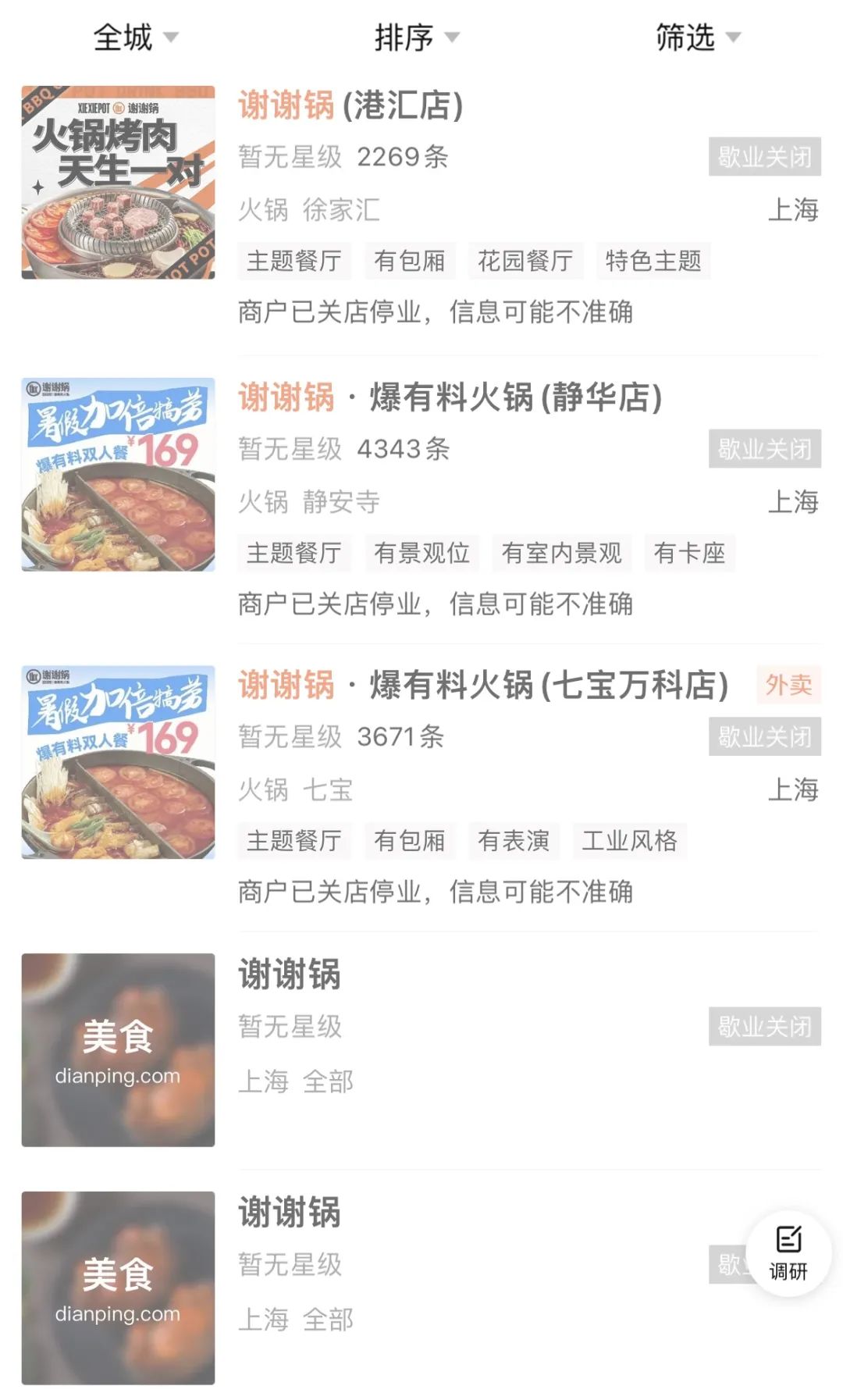 近日,火锅品牌谢谢锅出现大规模关店。在大众点评上搜索“谢谢锅”,显示位于广州、深圳、上海等地的门店,均为“歇业闭店”状态。