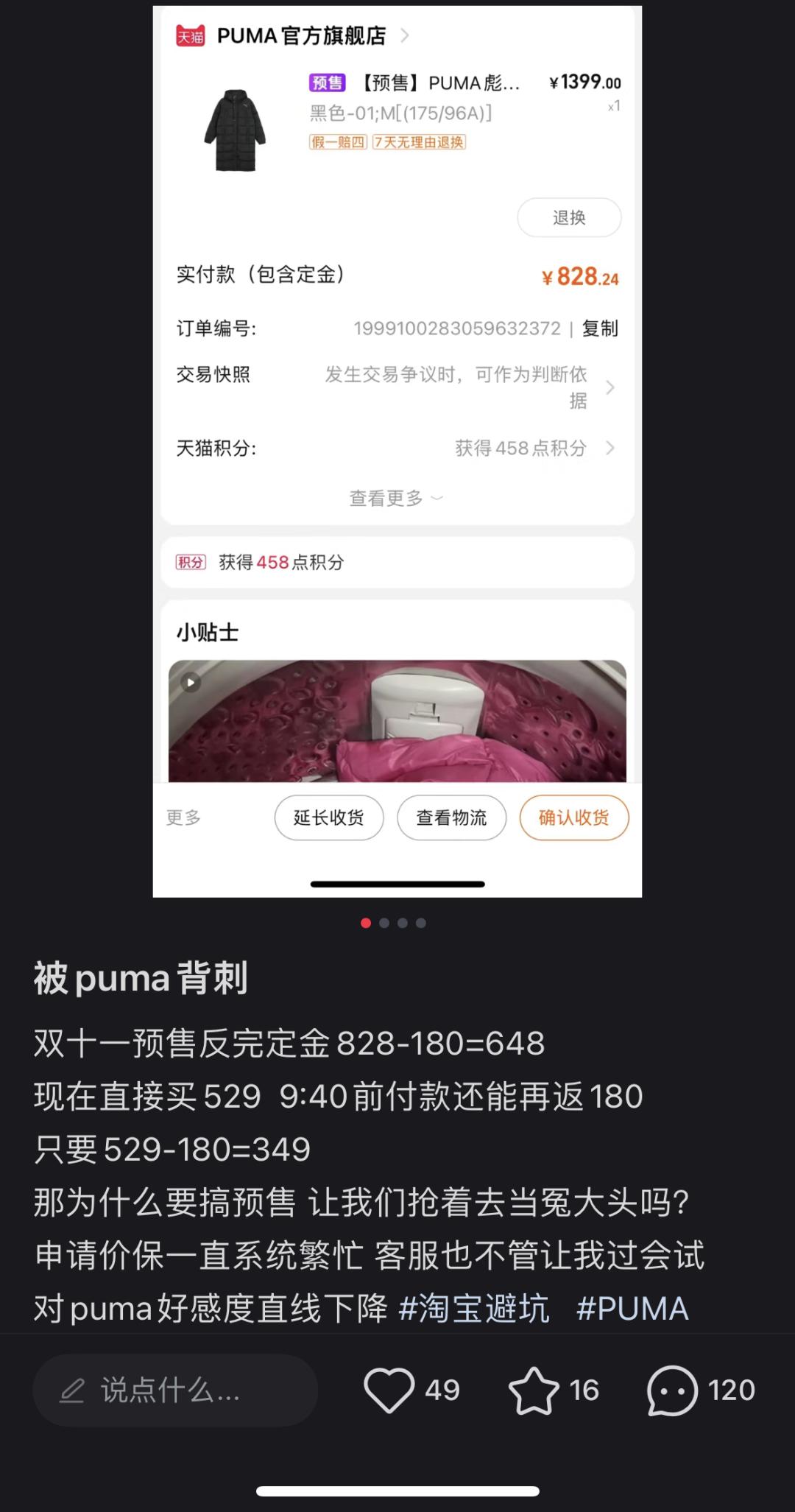 阿迪达斯并不是唯一一个在双11期间遭到消费者不满的运动品牌。彪马的线上旗舰店也被指责随意变更优惠规则,被打上“玩不起”的标签。