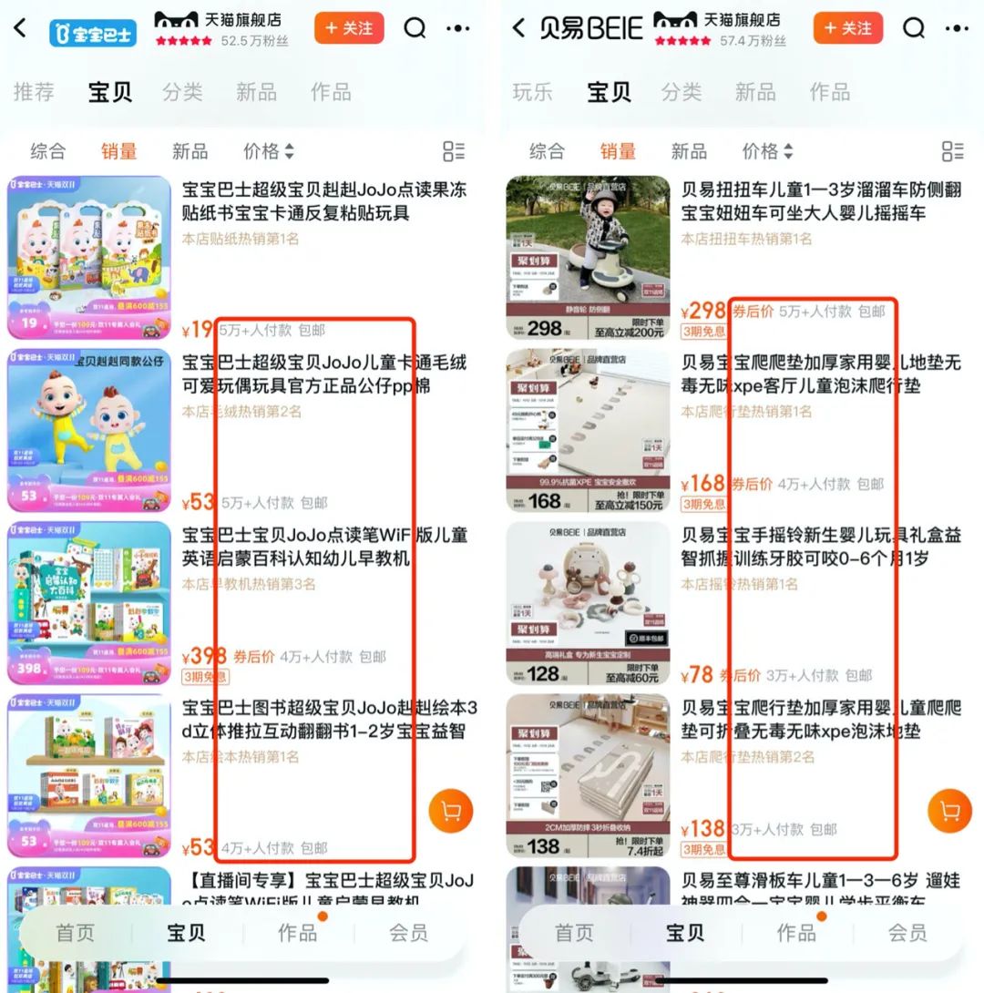 此外男孩向的童车、女孩向的治愈、包括益智玩具等,以下店铺产品也均有涉及。