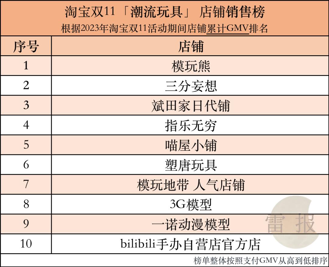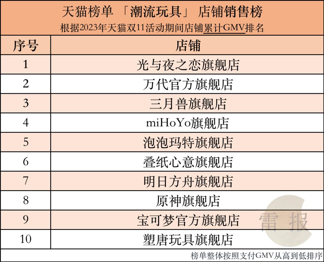 4-10位依次是三丽鸥、变形金刚、泡泡玛特、假面骑士、原神、光与夜之恋、小黄鸭。