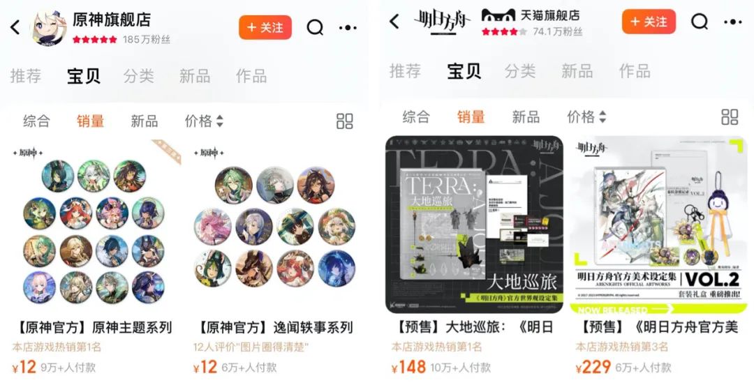 总的来看,在天猫该领域, 乙游 ,也就是针对女性玩家的恋爱模拟类游戏, 以及其他的二次元类型游戏,这些IP和项目的周边产物总体非常受消费者欢迎 :除了“光夜”表现非常突出,玩具潮玩店铺销售榜排名仅次于乐高,排名第二,潮流玩具店铺销售榜更是位居第一,将万代甩在身后。此外 米哈游(miHoYo) 旗舰店、 叠纸 心意旗舰店、 明日方舟 旗舰店、 原神 旗舰店也均入围玩具潮玩店铺销售榜,TOP20的位置就占据5席,“潮流玩具”店铺销售榜,TOP10也占据了5席,可以说, “二次元游戏赢麻了”。