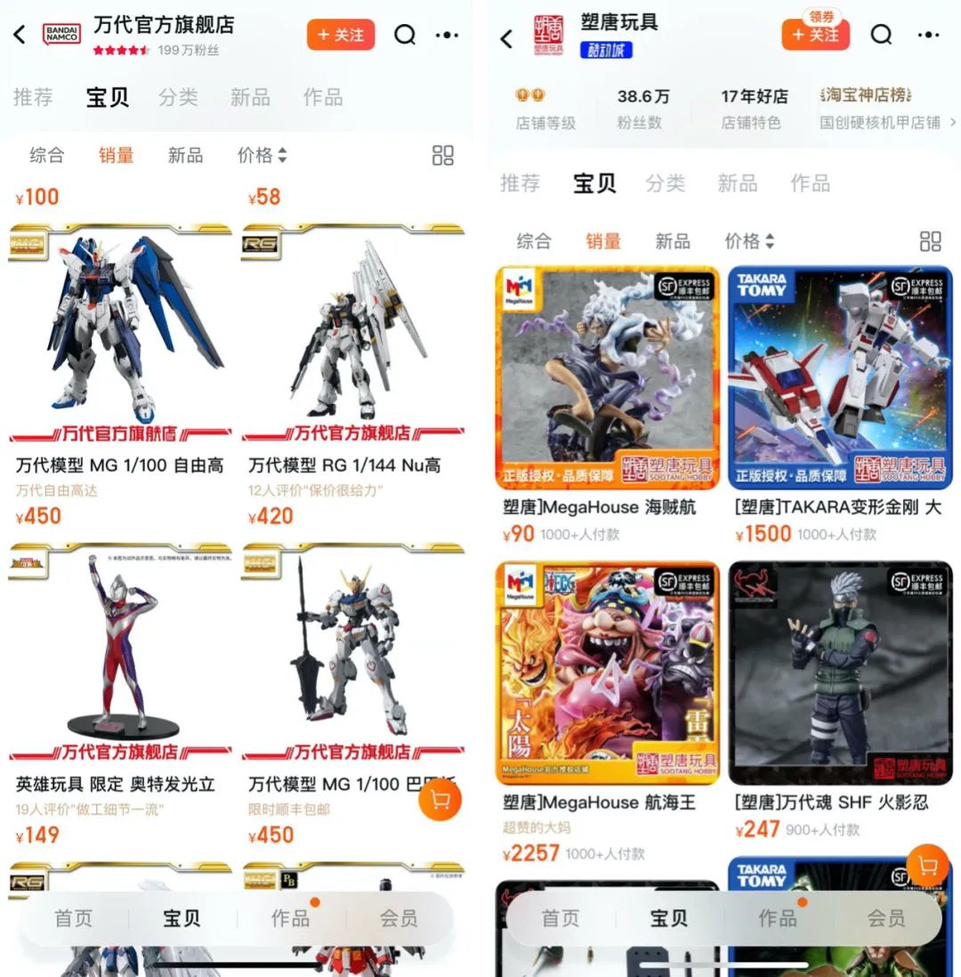 值得一提的是,据了解, 首次参与双11的“新店”三月兽(旗舰店)5分钟便实现成交破千万 ,作为国产品牌,其在销售榜排名第四,同时 半小时冲破1500万,当时仅次于万代,整个双11期间则最终取得了超过5000万元的销售额,在潮流玩具店铺销售榜位列第三 。从中也可见天猫潮玩玩具方面,表现优异的赢家的销售战绩规模。去年,“天猫”玩具潮玩方面,有3个店铺破千万,30个破百万;“淘宝”玩具潮玩行业则有4个店铺踏入千万商家俱乐部。由此来看,至少 在天猫平台,头部企业的销售额,今年应该是要比去年优秀的 。万代官方旗舰店也在半小时破去年首4小时。