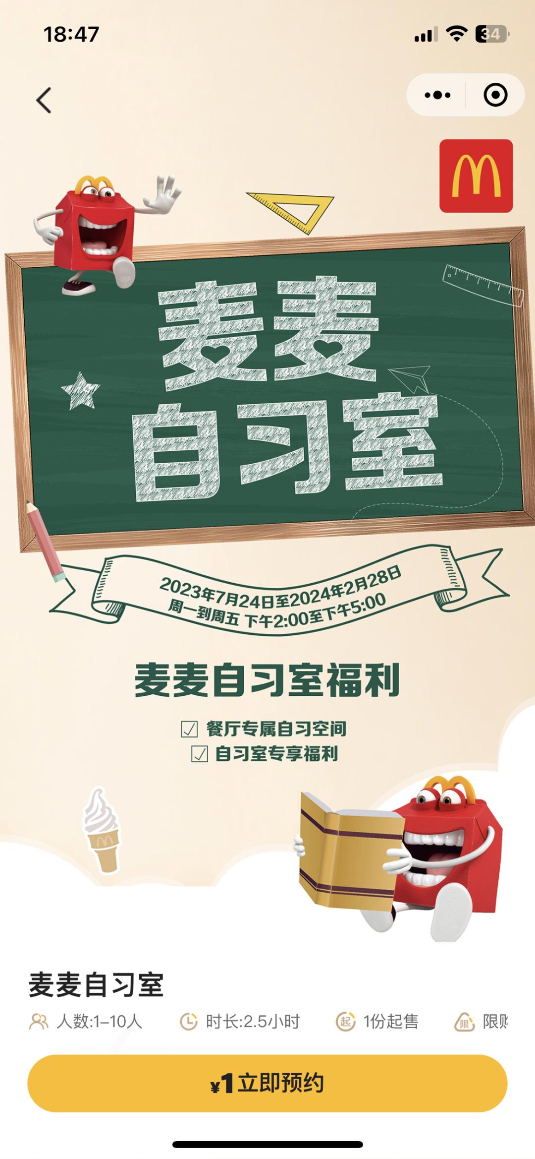 今年9月,麦当劳正式在官方APP和小程序上线了自习室预约并进行了相关规则的细化,北京等地有近20家门店开放了「麦麦自习室」。
