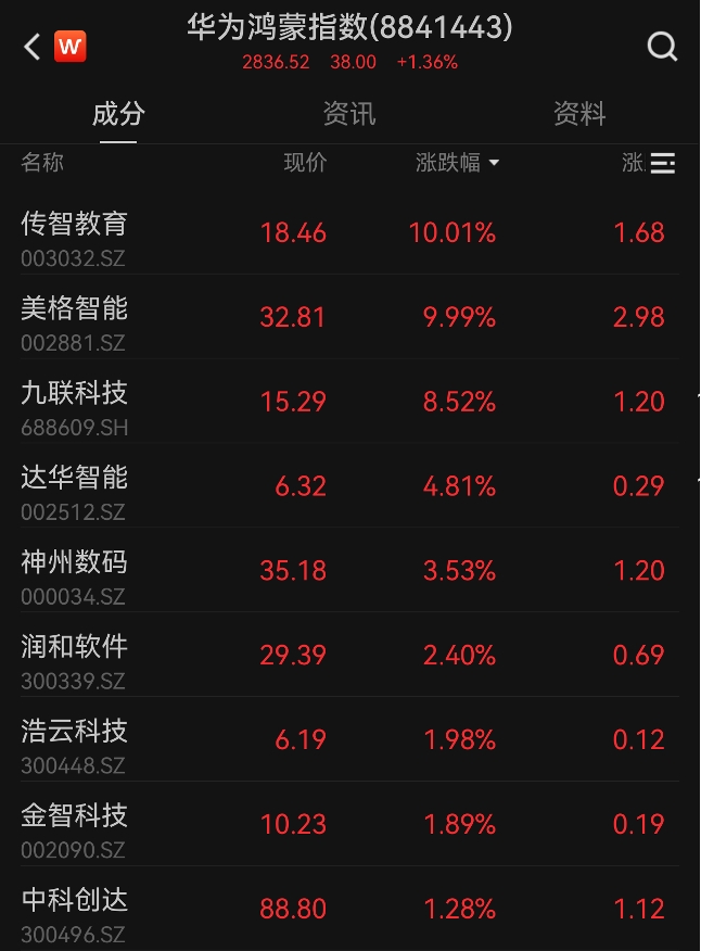 鸿蒙概念股早盘活跃,智教育3连板,延华智能涨停,达华智能、九联科技、德生科技、芯海科技等跟涨。消息面上,近日华为宣布与美团以HarmonyOS为基础进行产业创新、技术应用、商业发展等方面展开全面合作,全力支持美团启动开发鸿蒙原生应用工作。