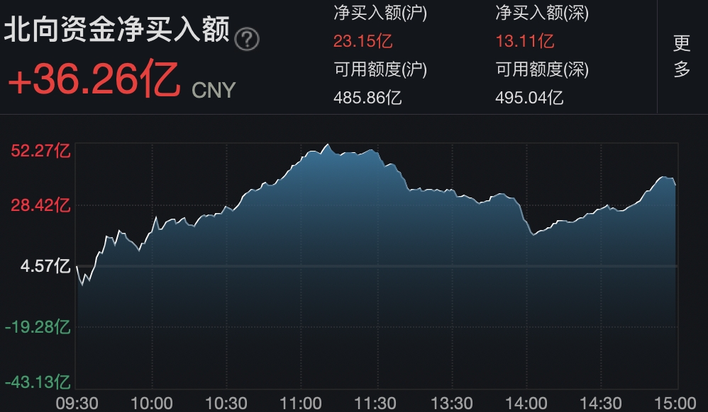 A股三大指数集体收涨,沪指涨0.55%,深成指涨0.72%,创业板指涨0.53%;北向资金净买入36.26亿元。