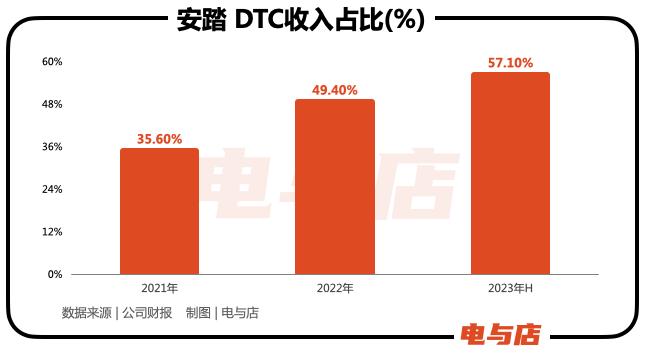 截至今年上半年,李宁总共有1423家直营店,仅占其门店总数的23%。相较2020年才开始DTC改革的安踏,目前直营店的数量占比已经来到了近一半。安踏2023年中报显示,公司截至2023年6月底的5500家门店中,有43%为品牌直营店,这些直营店为安踏贡献了57.1%的收入。