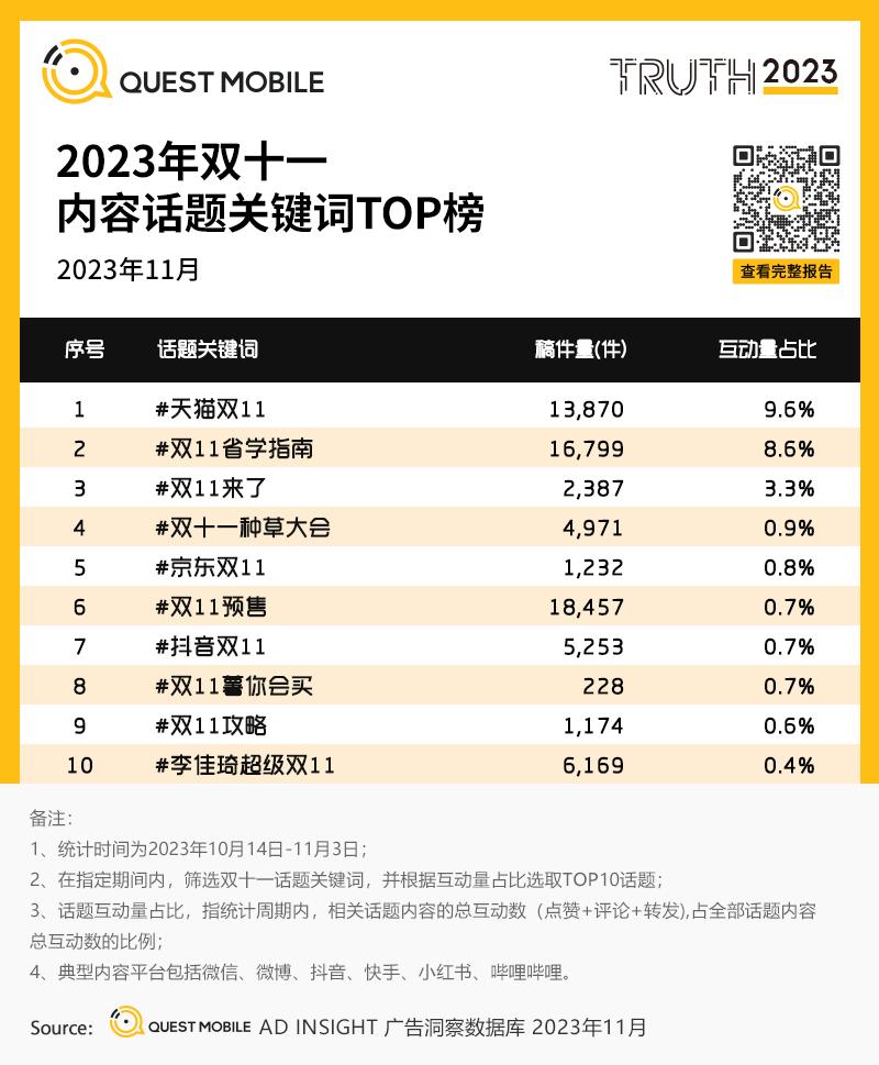 7、 2023年双十一内容话题关键词TOP榜