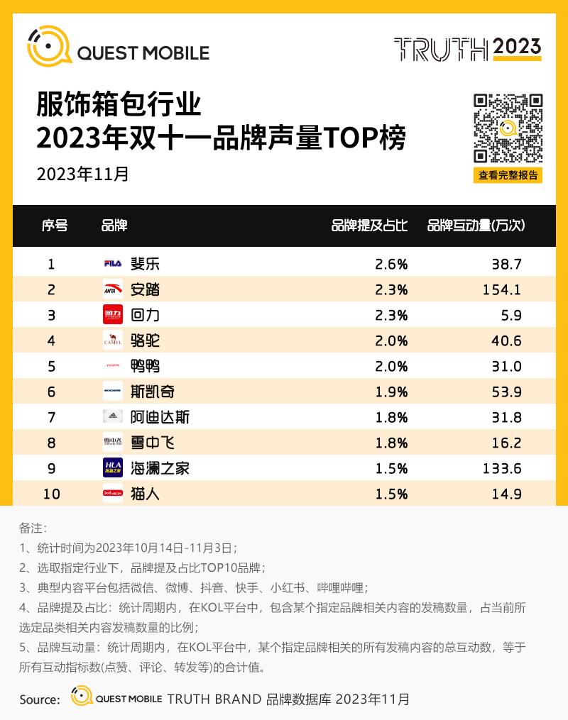 5、服饰箱包行业2023年双十一品牌声量TOP榜