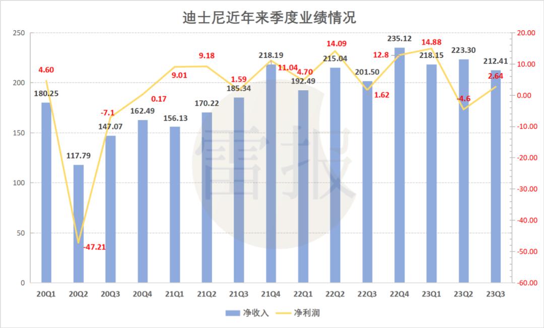 迪士尼近年来季度业绩情况