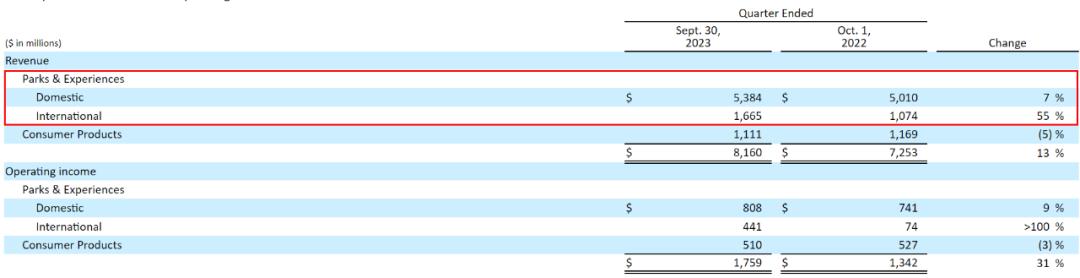 2023年Q3,迪士尼【体验】板块的整体收入增长13%,营业收入同比增长了30%以上,所有国际网站、迪士尼游轮公司、迪士尼度假俱乐部和迪士尼乐园度假区均实现同比增长。