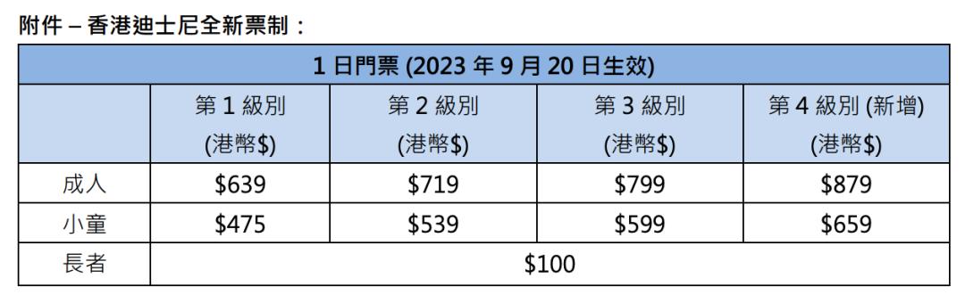 去年9月21日,香港迪士尼在其门票分级制上新增了一款针对特定高峰日的一日标准门票,并上调了年票价格。今年,香港迪士尼在1日门票分级制中又新增了一款门票级别,重新命名了其现有的1日门票种类,且一日门票与年票价格普遍上涨。其中,新增的1日门票级别中,成人票价格高达879港元(约821元)。
