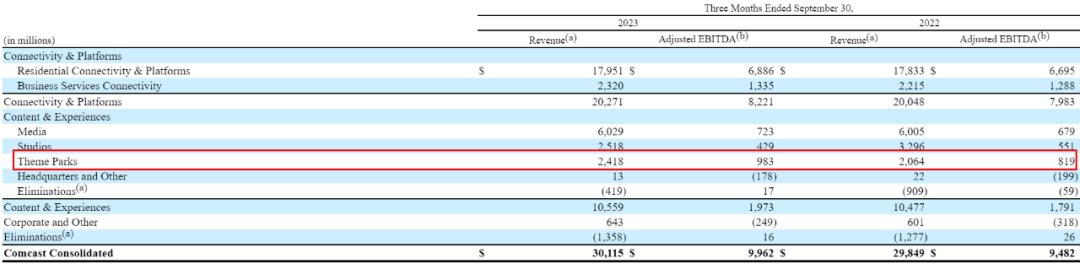 NBC环球旗下环球影城主题乐园的业绩表现同样良好,康卡斯特在奥兰多、佛罗里达、洛杉矶以及大阪和北京经营着环球主题公园,在第三季度实现收入24.18亿美元(约合人民币176亿元),同比增长17%。