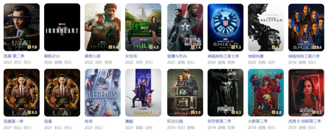 近年部分迪士尼“漫威”IP网络剧集