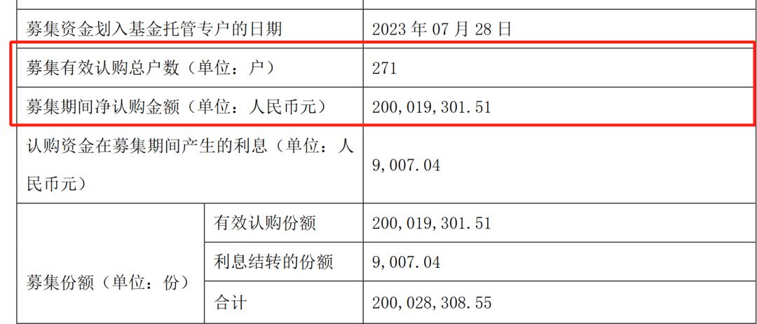 华泰柏瑞锦合债成立时,募集份额为2.00019亿份,募集资金2.00019亿元,募集金额刚好满足2亿元成立的条件,有效认购总户数为271户。