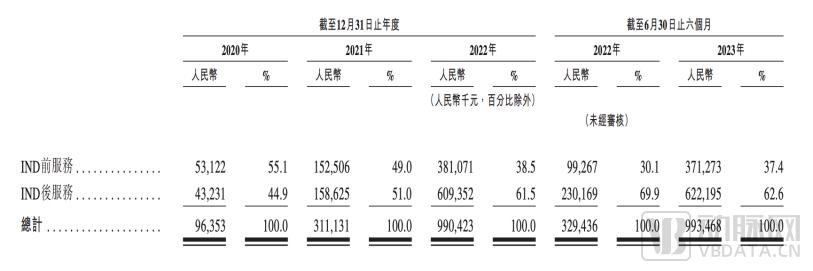 随着药明合联服务的早期阶段客户逐渐向后期和商业化阶段推进,公司将拥有更丰厚的营收来源。招股书中已能观察到,公司通过IND后服务获取的营收比例不断攀升,2020年至2023年上半年,IND后服务营收占比已从44.9%升至62.6%。