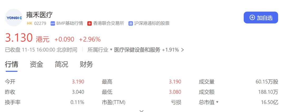 2021年12月13日,雍禾医疗正式登陆港交所,发行价为15.80港元/股,截至上市首日港股收盘,其总市值达到86.3亿港元,而目前雍禾医疗的总市值仅16.50亿港元,缩水超过80%。