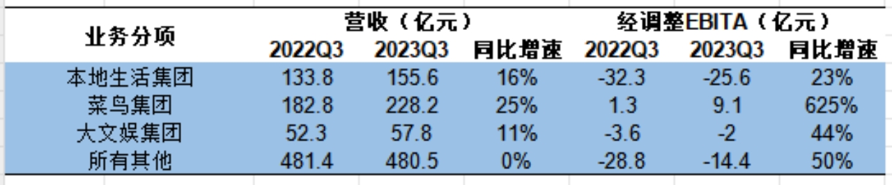 盈利能力方面,季度内菜鸟盈利能力显著提升,经调整的EBITA为9.1亿元,较去年同期大幅扩张625%,其他的本地生活、大文娱和国际数字商业集团则在规模持续增长下,亏损幅度得以进一步收窄。