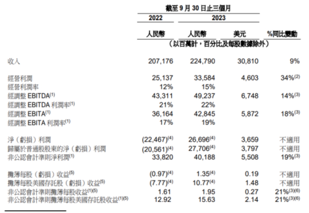 11月16日港股收盘后,阿里巴巴集团发布了2024财年第二季度(对应2023年第三季度)的财务报告。