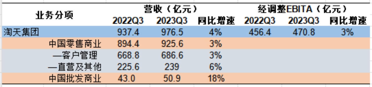 图:2023年Q3淘天集团营收分项及利润表现 数据来源:公司财报、36氪整理
