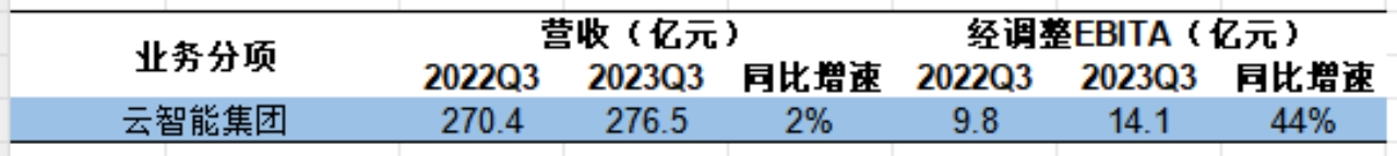 图:2023年Q3云智能集团营收及利润 数据来源:公司财报、36氪整理
