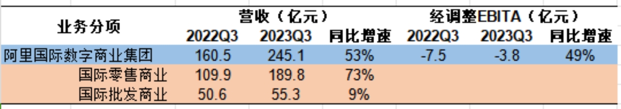 图:2023年Q3国际数字商业集团营收及利润 数据来源:公司财报、36氪整理