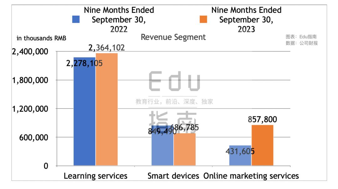从本财年前三个季度来看,有道公司学习服务营收为23.6亿元,上一财年同期为22.8亿元,本期同比增长3.8%。