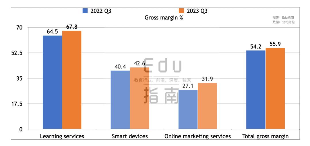 其中学习服务本季度毛利率为67.8%,高于上一财年同期的64.5%。季报称该项业务毛利率提升,是因为其第三季度规模经济改善。