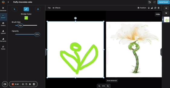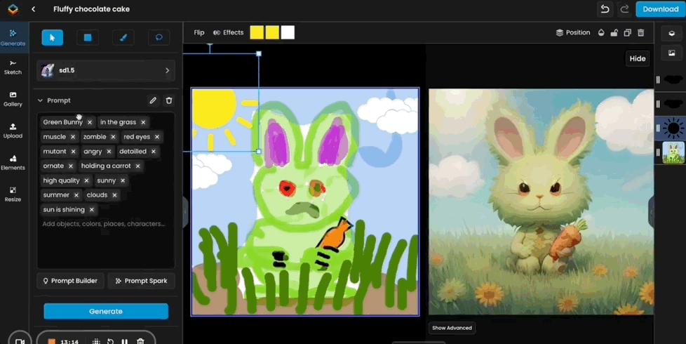 只见一边在绘制草图,另一边AI就把相应的画作绘制好了,时间上几乎同步。