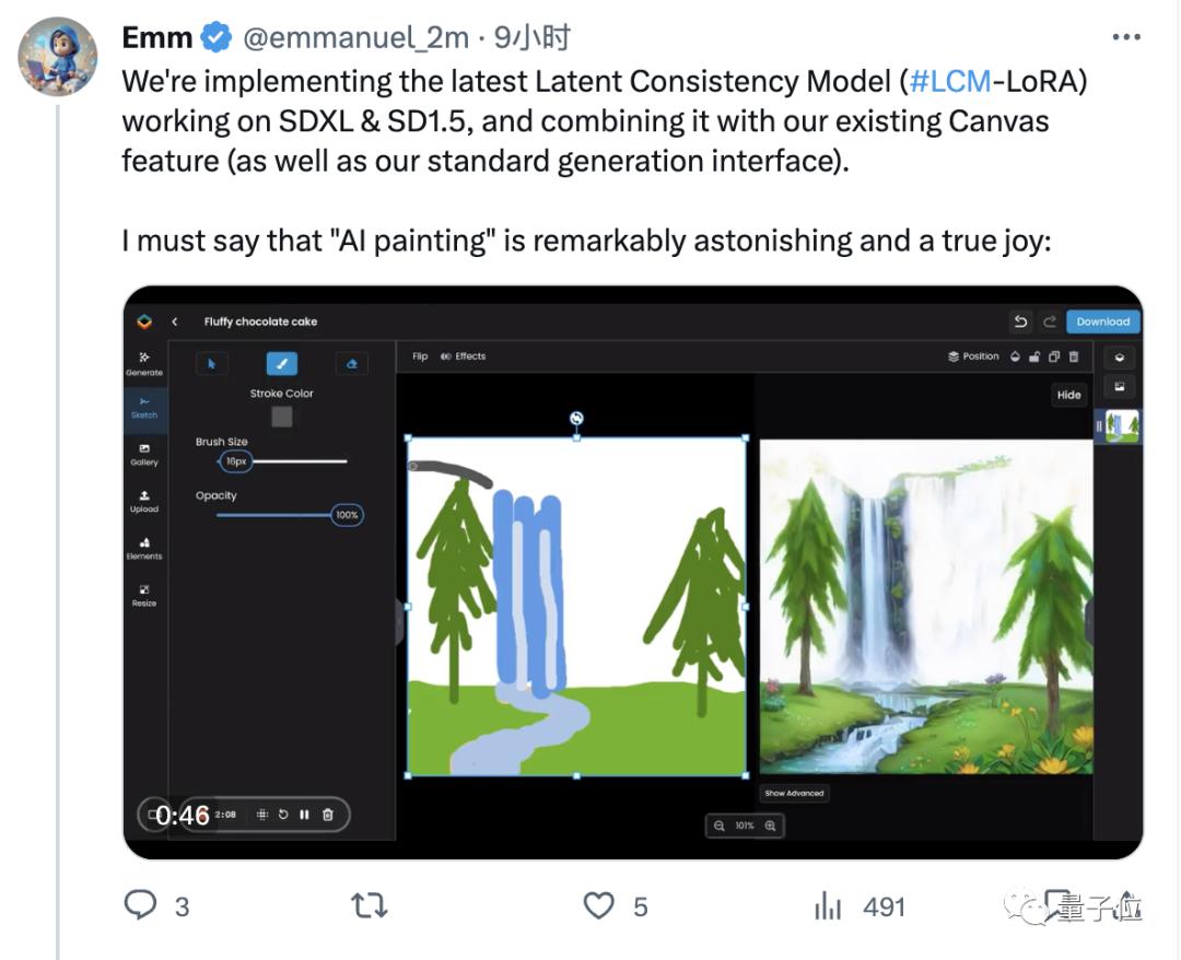 LCM-LoRA开源后不久,就有AI绘图工具厂商Scenario宣布将基于它推出“实时绘图”功能。