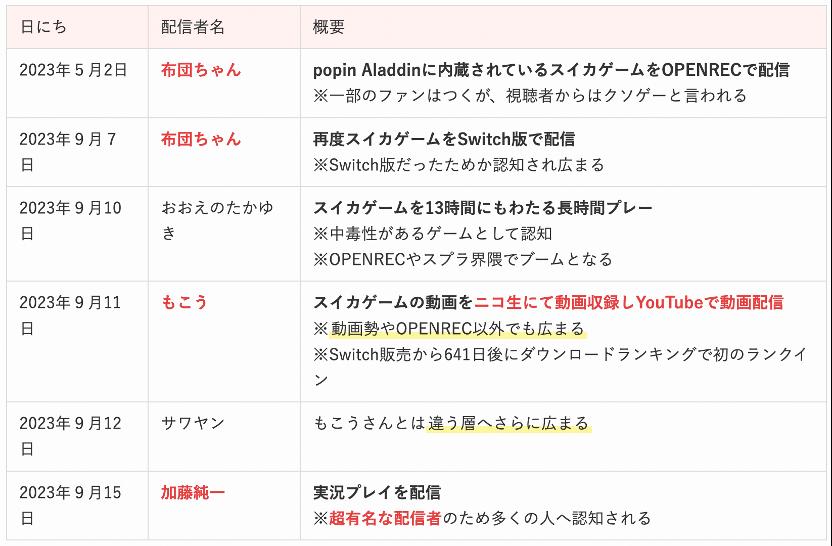 由于直播反响不错,布団ちゃん又在9月份上传了Switch版本的试玩视频,播放量达到23万,也让其他主播注意到了游戏自带的“节目效果”。随着もうこ、加藤純一等人气油管主先后加入直播行列,加上游戏本身低廉的售价,让《Suika Game》很快迎来裂变节点,甚至成功登上Switch平台销量榜首。