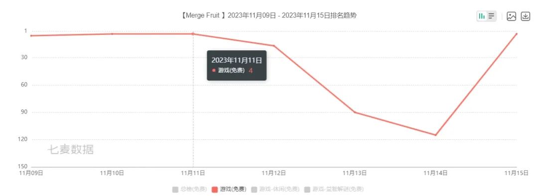 另一款使用相似素材的则是越南厂商hapiga的《Fruit Merge: Watermelon Puzzle》。游戏曾经在法国iOS免费榜进入过前四名。
