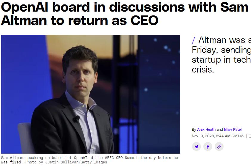 OpenAI董事会开除其联合创始人兼CEO的山姆·阿尔特曼(Sam Altman)后短短一天内,事情就迎来了戏剧性的反转。