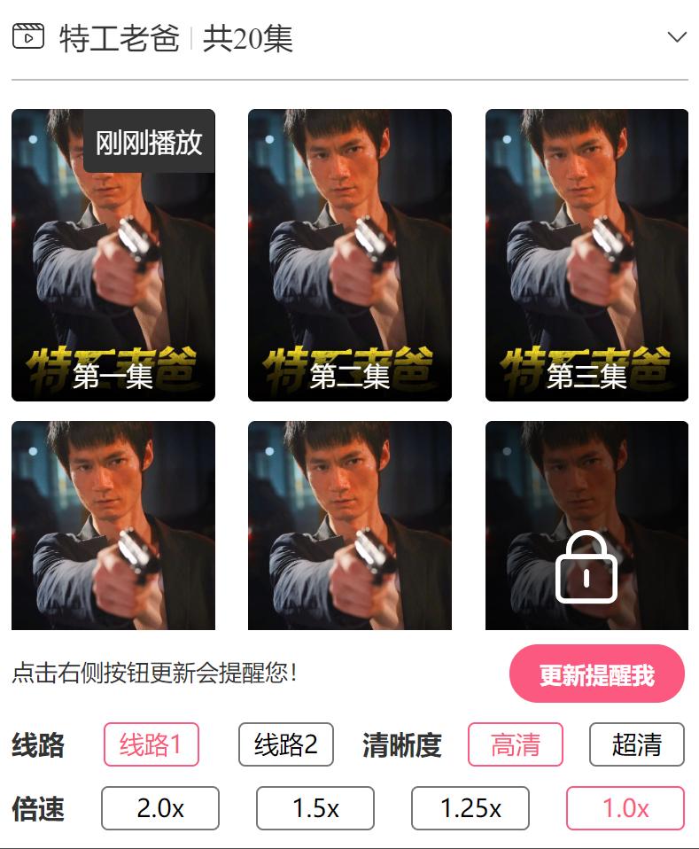 来自小程序“蝴蝶短剧”;剧中邀请了多位老牌港星坐镇,主要受众同样为中老年男性。