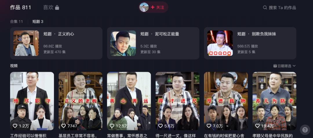 产出多个短剧系列,其中《正义的心》抖音平台播放量超86亿。
