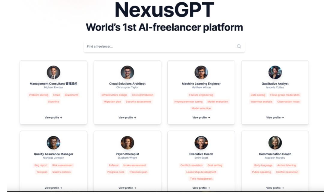 (3)经济和社会就业影响。未来工作中的一个重要挑战是人类与智能体之间的竞争。例如,AI自由职业者平台NexusGPT的出现便是对传统自由职业者的冲击。未来的社会工作协同中,也会出现越来越多的智能体,雇主基于效率和效益考虑,可能会尽量减少人力投入。随着智能体技术的成熟,我们必须提前思考这些技术发展对社会和个人职业生涯的长期影响。