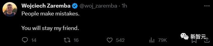 而作为OpenAI的联合创始人,Zaremba留言安慰Ilya,没事兄弟,是人都会犯错,你永远都是我们的朋友。