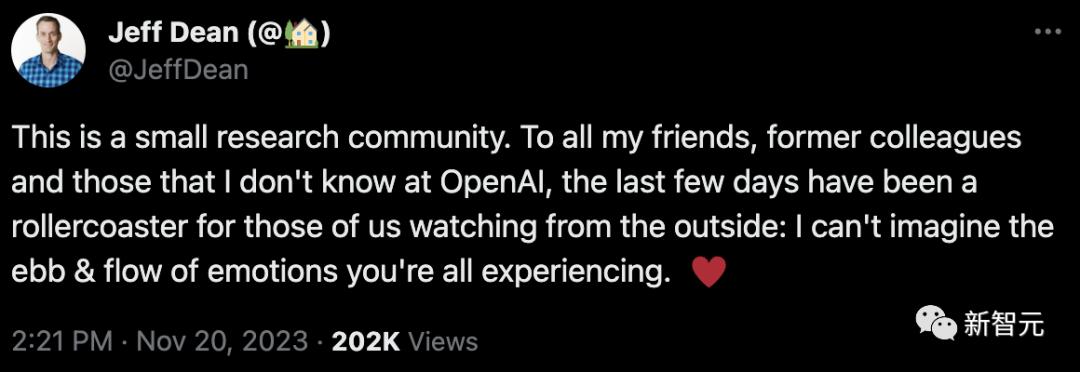Jeff Dean也马上发推,非常「含蓄」地表达了,OpenAI的朋友们,很心疼你们,如果你们过得不舒服,我们这边还不错呢。