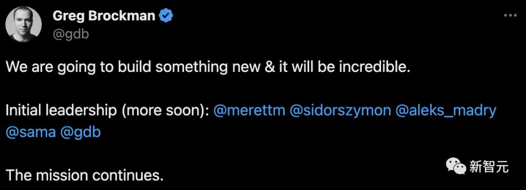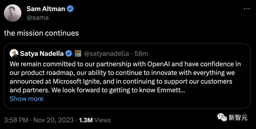 Altman和Brockman都回复了纳德拉的帖子「使命仍在继续」。