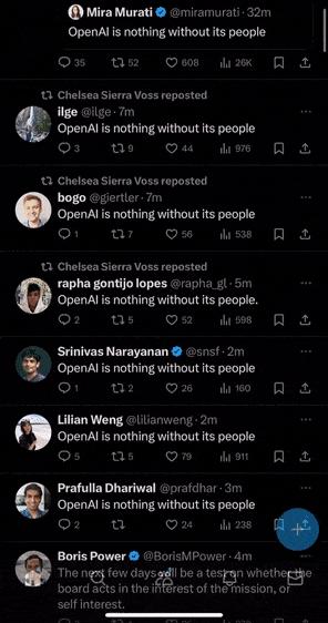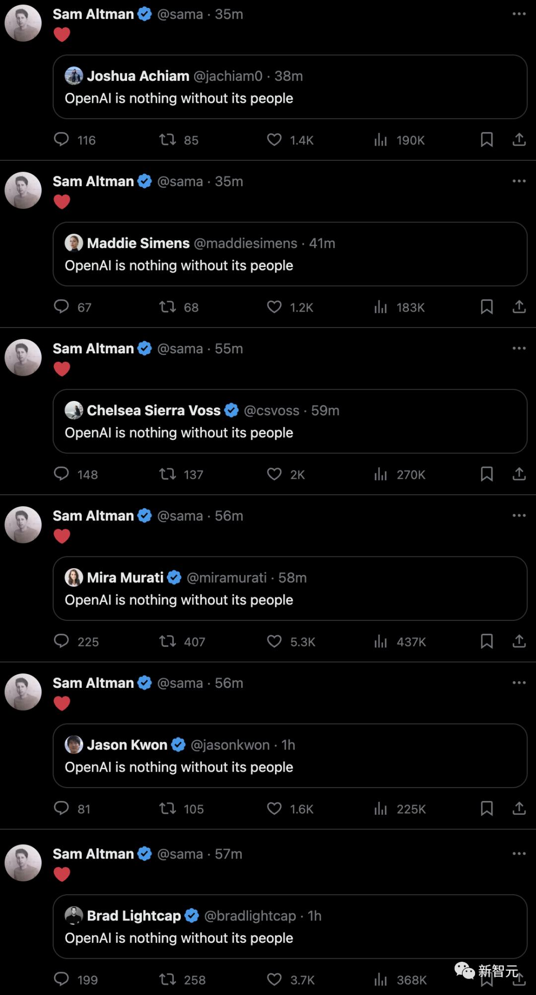与此同时,员工们也纷纷来到推特上发帖高呼——「没有了员工的OpenAI啥也不是!」(OpenAI is nothing without its people)