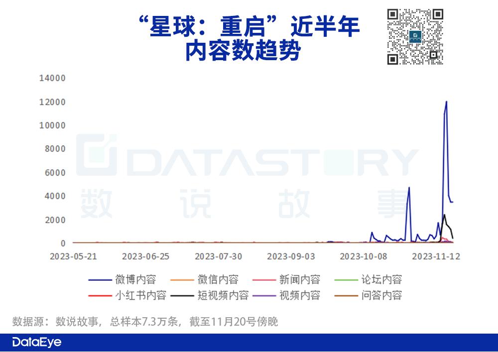 从内容数方面来看,微博是舆论主阵地。因为《星球:重启》官方推出转发内容抽手机活动,吸引不少用户转发内容参与,进而提升内容数。而短视频(主要是抖音)则是基于更多达人营销提供内容。