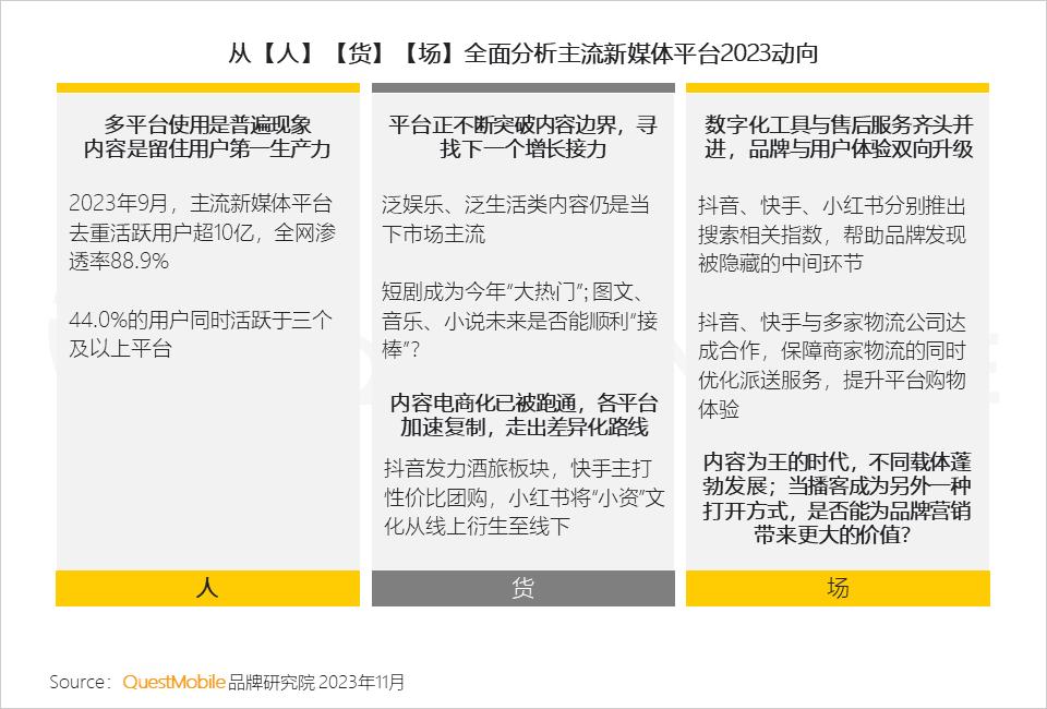 QuestMobile2023年新媒体生态洞察:行业用户规模10.88亿,用户流转、分流进入新阶段,平台以两大途径谋增长、冲变现