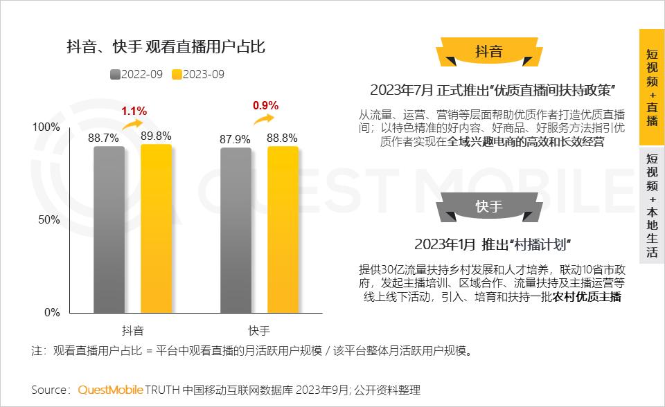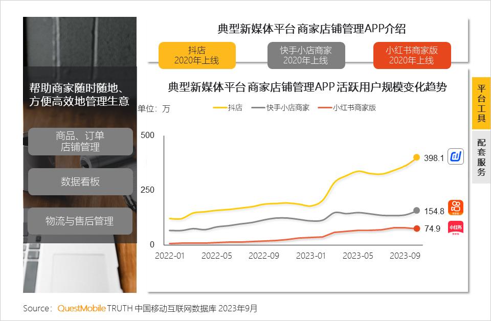 QuestMobile数据显示,抖音来客APP在2023年9月月活达424.7万,今年1-9月月复合增长率在8.9%;快手本地商家APP于今年9月上线,日活一路增长。
